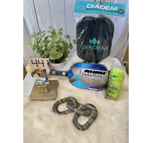 Serve up fun and competition with this Pickleball Essentials basket, featuring a Diadem Rush paddle, paddle cover, and balls—plus a $20 Mint Car Wash bonus card. Ideal for players of any level, it’s built for both performance and play. Lightweight, stylish, and ready for action, this set ensures every match is a hit. Grab a partner, hit the court, and embrace the fastest-growing sport around—it’s time to dink, rally, and win in style!