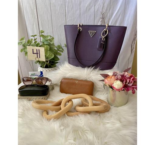 Unveil luxury and surprise with this stylish trio featuring a Guess purse, Coach women’s sunglasses, and a Fossil wallet. Chic, coordinated, and effortlessly fashionable, it’s a statement of sophistication from head to toe. Perfect for travel, shopping, or daily style, each item blends beauty with practicality. Because guessing is fun—but knowing you own this collection feels even better! Step out with confidence and class, carrying fashion’s finest wherever life takes you.