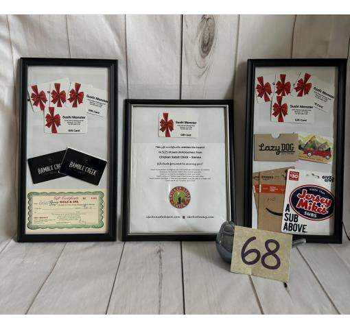 - $ 180 Sushi Monster gift cards (9@ $20)