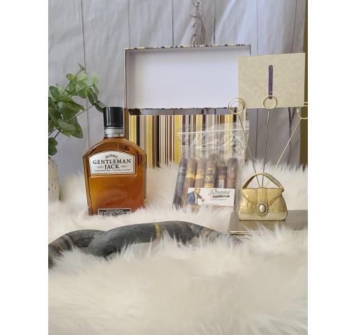 Distinguished taste meets timeless style in this gentleman’s collection featuring a bottle of Gentleman Jack Whiskey and a fine cigar set. Smooth, sophisticated, and crafted for quiet confidence, it’s the perfect pairing for reflection, relaxation, and celebration. Whether enjoyed fireside or gifted to someone who appreciates life’s finer details, this basket embodies class, craftsmanship, and conversation. Pour a glass, light a cigar, and enjoy a moment made for men of distinction. Bid boldly and bring this home tonight.